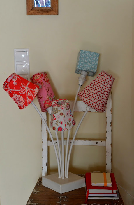Hoje fiz um abajur para substituir um do candeeiro do quarto das minhas filhas. Gostei tanto deste projecto, que decidi brevemente voltar a fazer mais. O tecido é da designer Amy Butler.