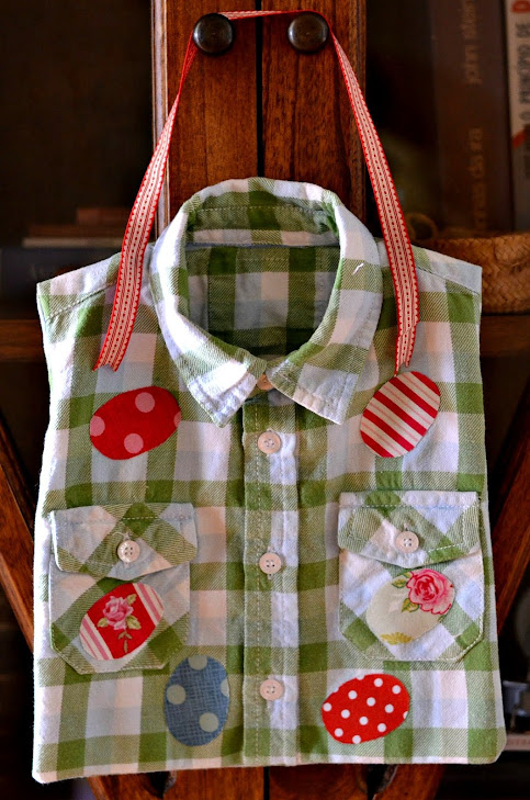 Aproveitei uma camisa que já não lhe servia, cortei-lhe as mangas e o capuz e decorei-a de acordo com a quadra 🙂